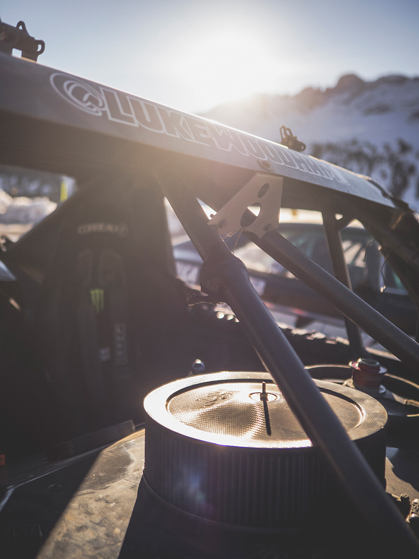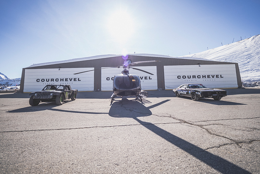 Armed with his V8 Pro Lite truck, Monster Energy’s Luke Woodham goes drifting in the snow at Courchevel with Hyperdrive star Alexandre Claudin in his ’68 Dodge Charger.
